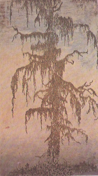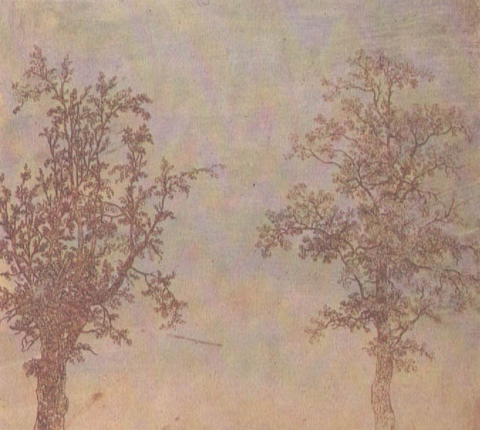 Ets, met donkerbruin gedrukt op rose geprepareerd